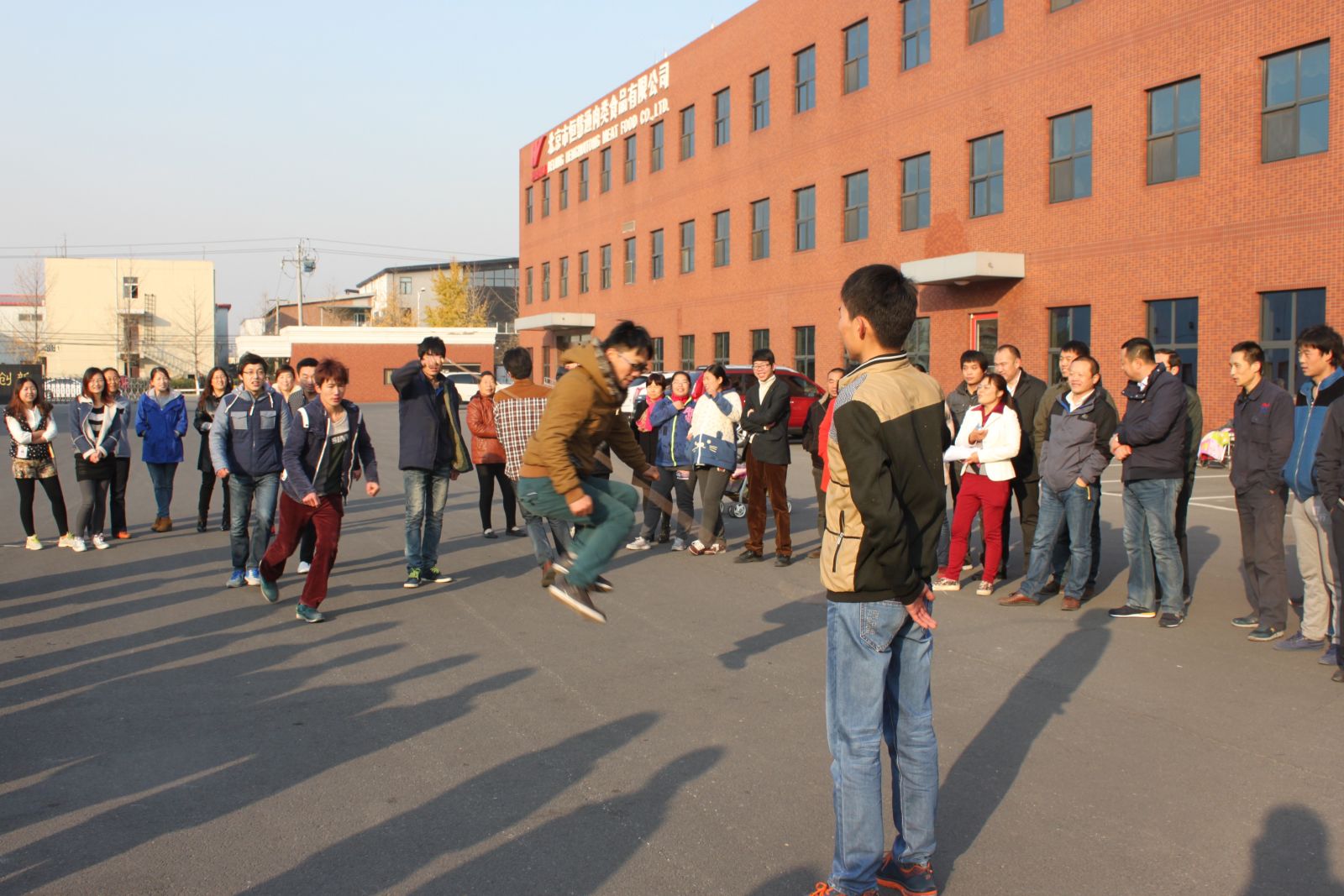 在圍觀同事的助威聲中,裁判的一聲“開始”, 場地上的參賽人員很快進入狀態(tài),各個自覺在繩一側(cè)排好隊,有次序地進行跳躍。運動員們身手敏捷以各種優(yōu)美的姿態(tài)越過大繩,且為了爭取在更短的時間跳過更多的人,大家紛紛加快腳步,圍觀的同事也被賽場的氣氛所感染,有的大聲吶喊,有的躍躍欲試。參賽同學(xué)用各種方式讓比賽變得更加有趣、氣氛變得更得更加熱烈。
